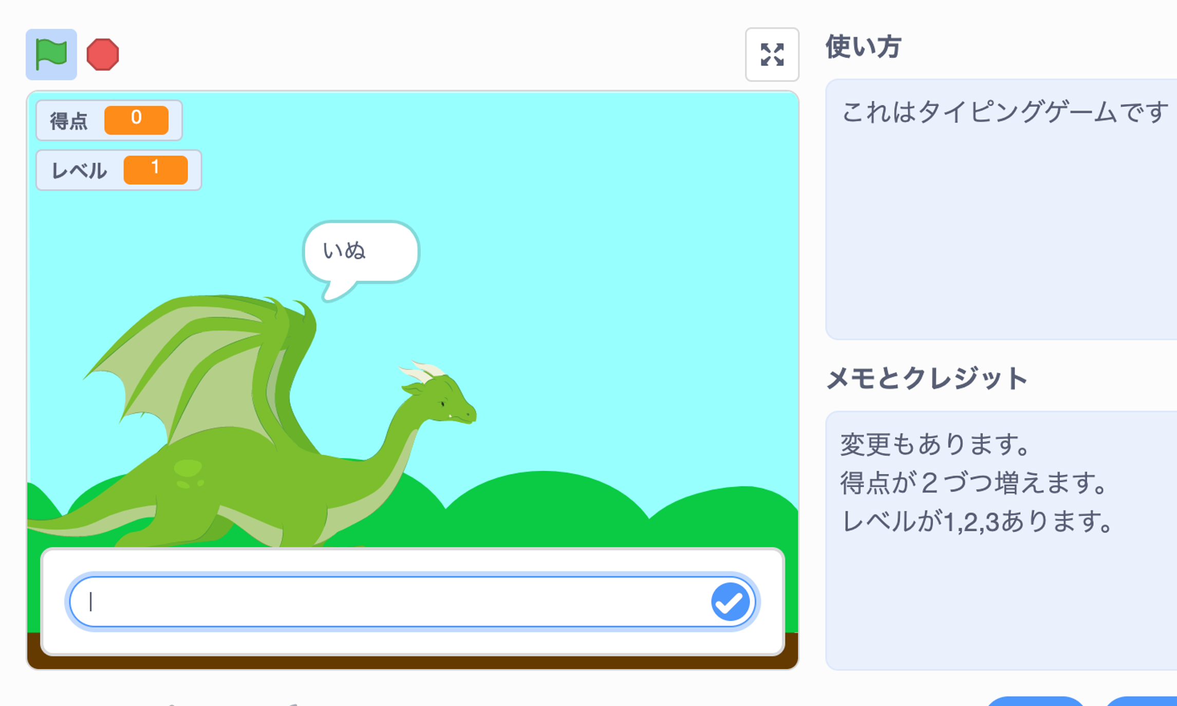 - 6年生が作ったScratchのコンテンツにアクセスし、タイピングゲームを試す。